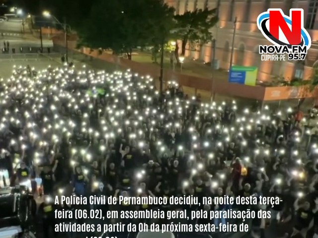 A Polícia Civil de Pernambuco decidiu, na noite desta terça-feira (06.02), em assembleia geral, pela paralisação das atividades a partir da 0h da próxima sexta-feira de carnaval (09.02).